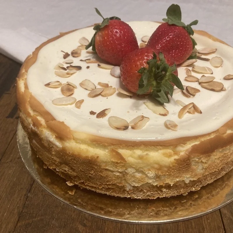 Mama Z’s cheesecakes are baked in springform pan with a nine-inch diameter. Because it’s more work and materials on the production side, the price for a whole cheesecake is $35.